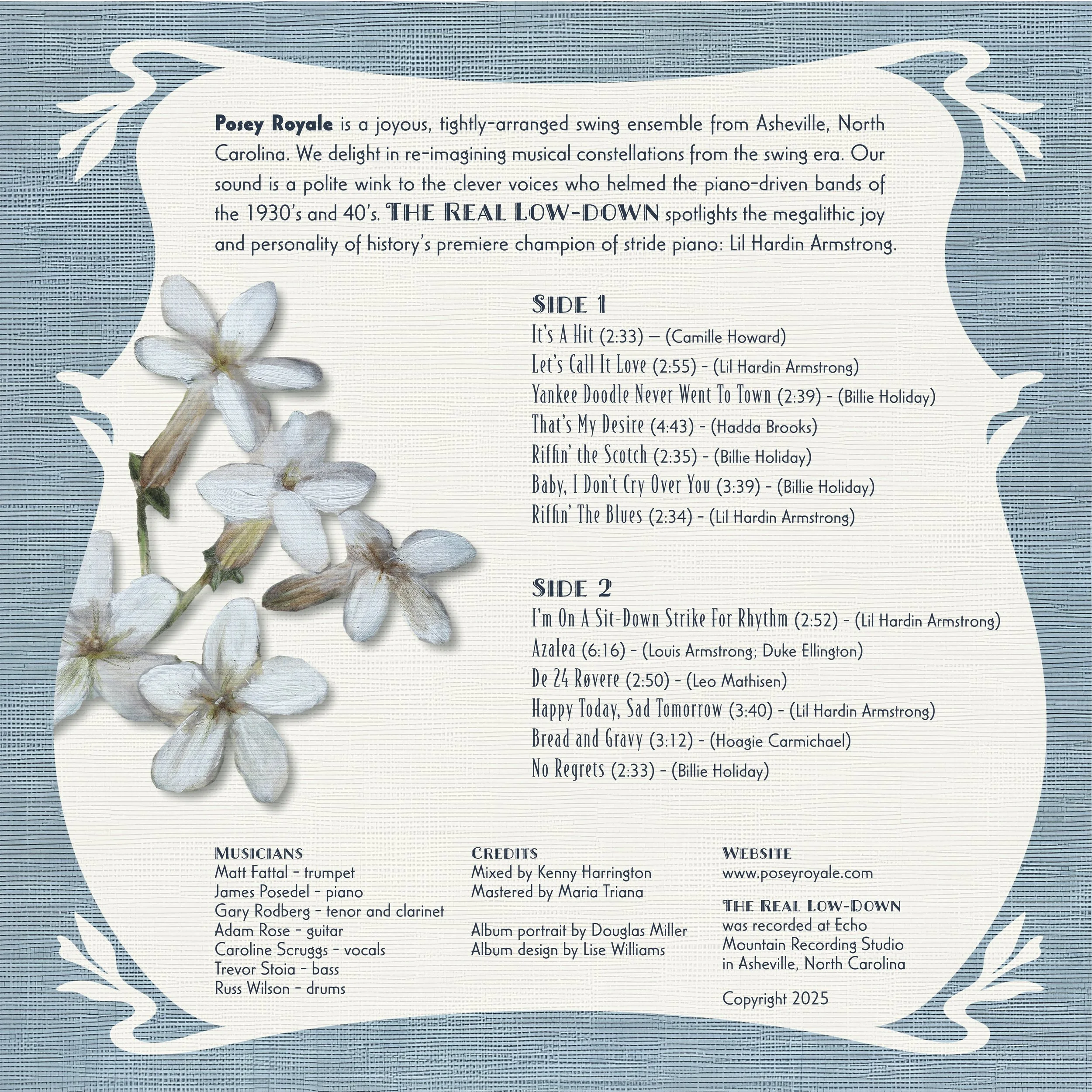 The Real Low-Down was recorded at Echo Mountain Recording Studio in Asheville, NC. Our album artwork was created by Douglas Miller.